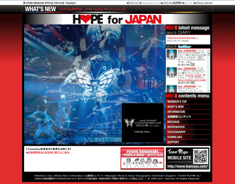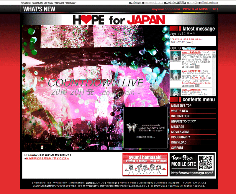 Die offizielle Team Ayu Seite hat sich verändert, aber anstatt für Five zu werben, werben die doch lieber für das CDL...
