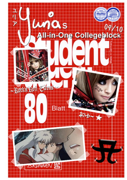 hab meinen collegeblock etwas "gepimpt" (Heftstreifen für Arbeitsblätter rein und in 4 Fächer eingeteilt (Sprache, Naturwissenschaft, Geschi, PoWi)) und ein cover erstellt
